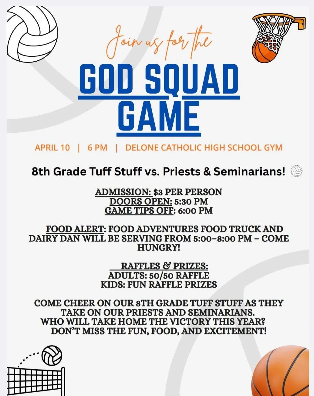 Don’t miss our fun annual tradition of the eighth graders facing off against the priests and seminarians!
