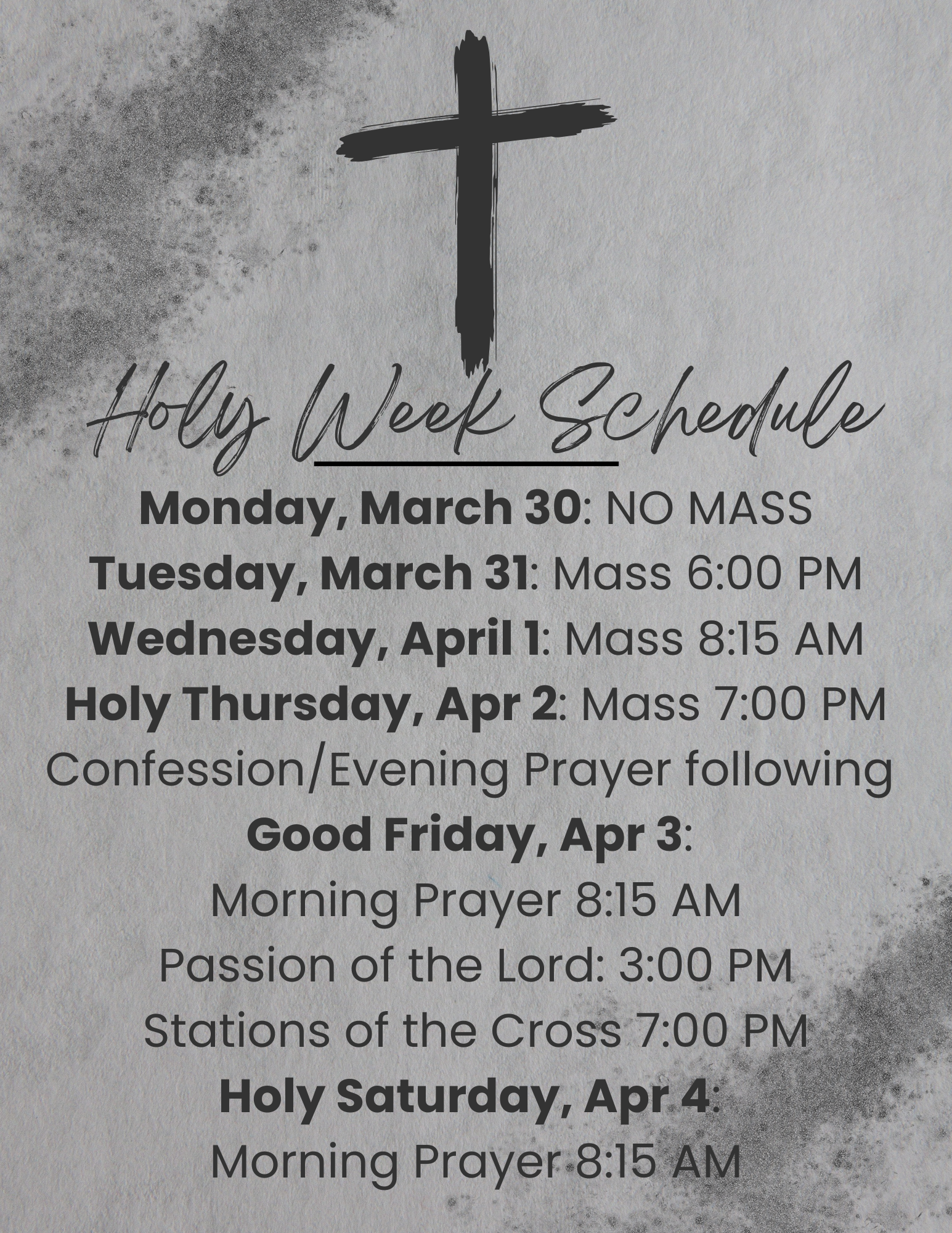 Holy Week Schedule